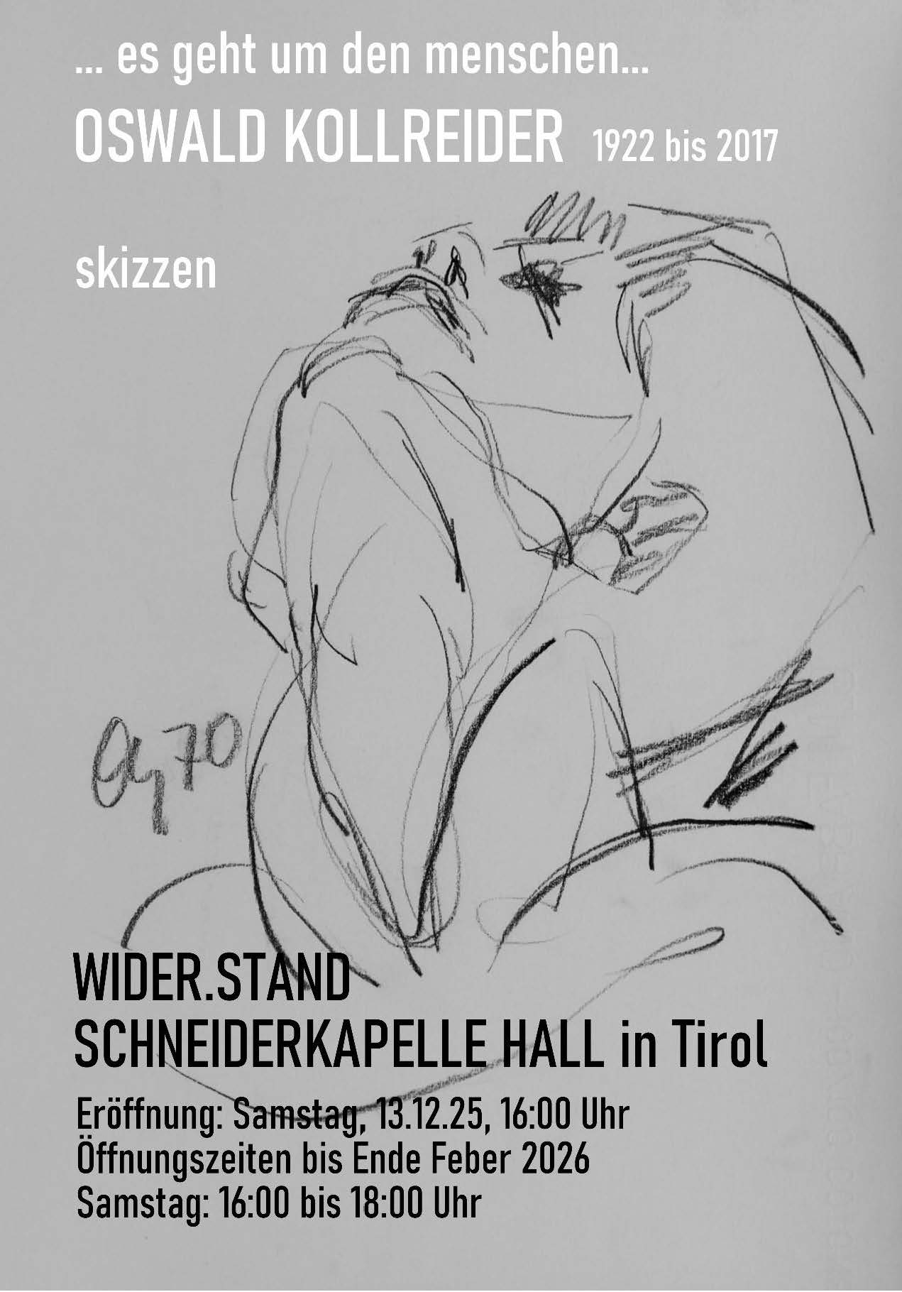 Oswald Kollreider (1922 – 2017), in St. Oswald/Kartitsch geboren und ab 1960 in Strassen beheimatet, zählt zu den wichtigsten Vertretern der Tiroler Malerei und Grafik nach 1945. Im Zentrum seines umfangreichen Werkes steht die Auseinandersetzung mit Menschen und mit religiösen Themen.
