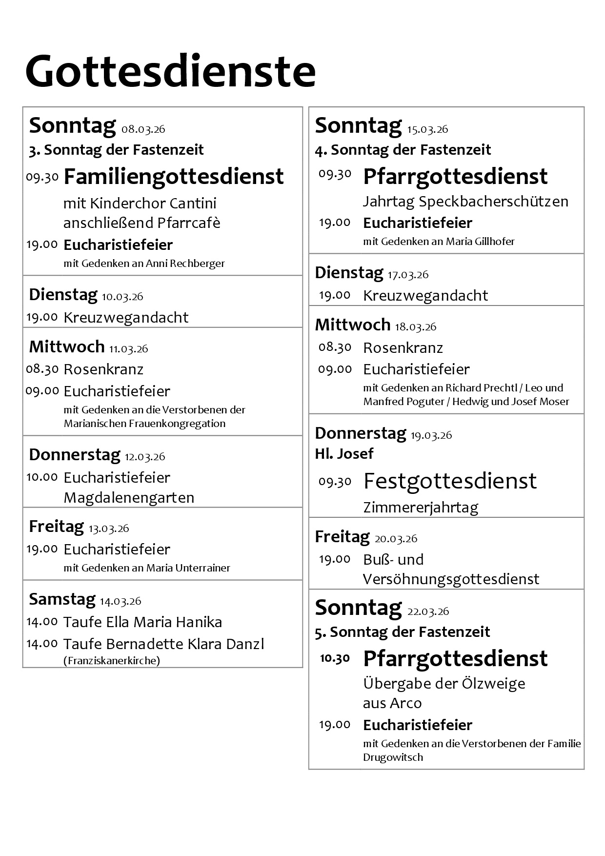 3. Sonntag der Fastenzeit, Kinderchor Cantini, Pfarrcafé