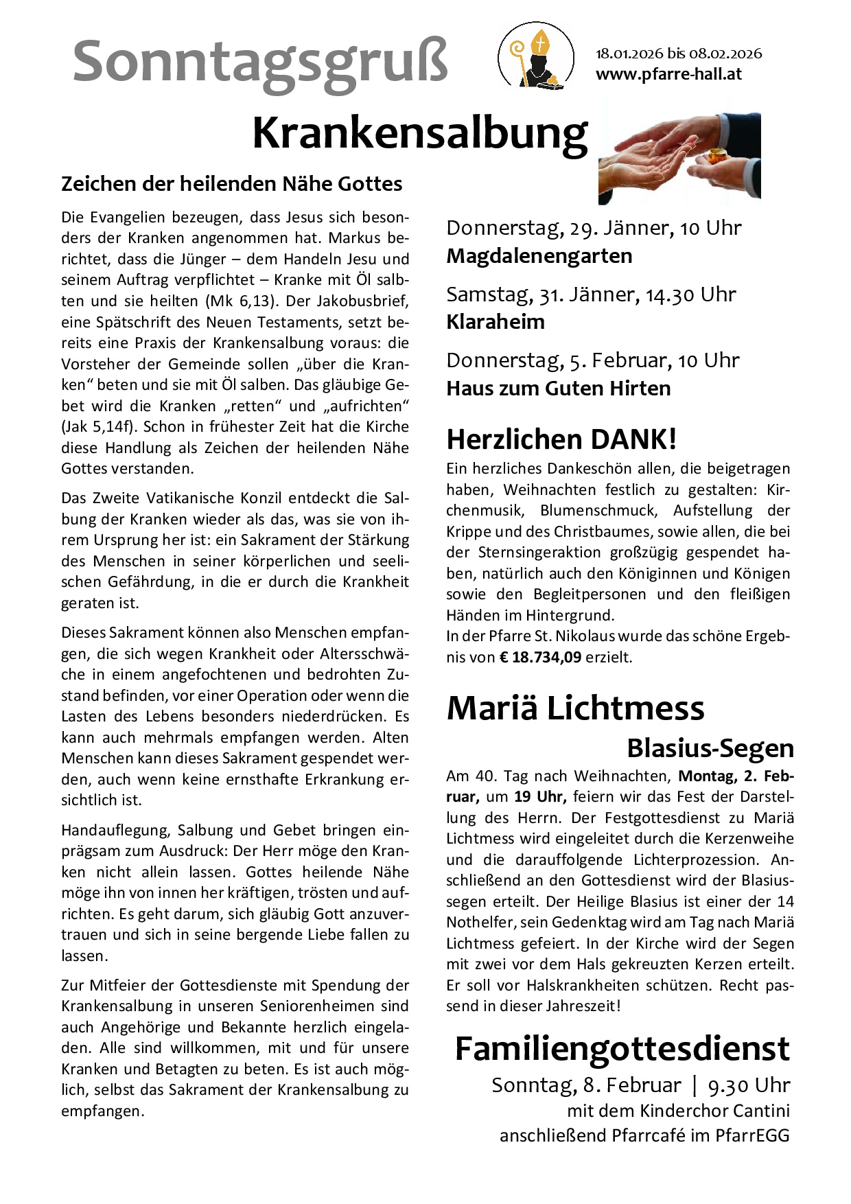 aktuelle Informationen der Pfarrgemeinde